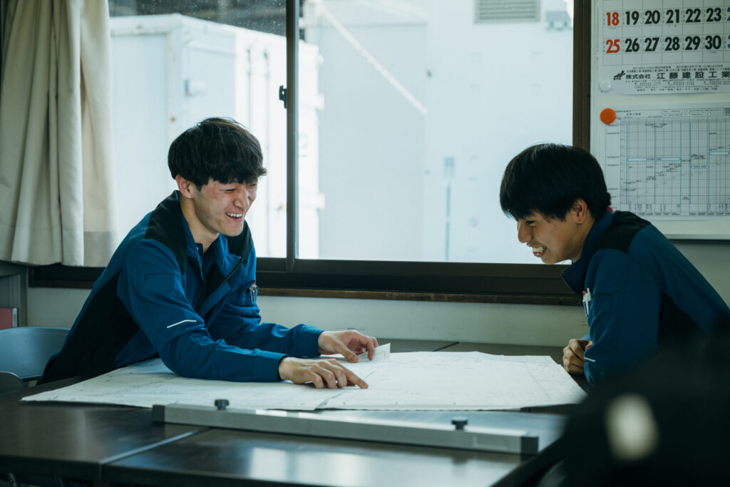 建築業というと怖い、厳しいといったイメージもありましたが、自分が働いてきた中では、若い社員の成長を会社全体で後押ししてくれる雰囲気があります。自分たちの仕事に人一倍の責任と誇りを持って仕事に取り組む先輩方の姿を前に、自分もいつかこんな仕事ができるようになりたいと思いながら日々の業務に取り組んでいます。