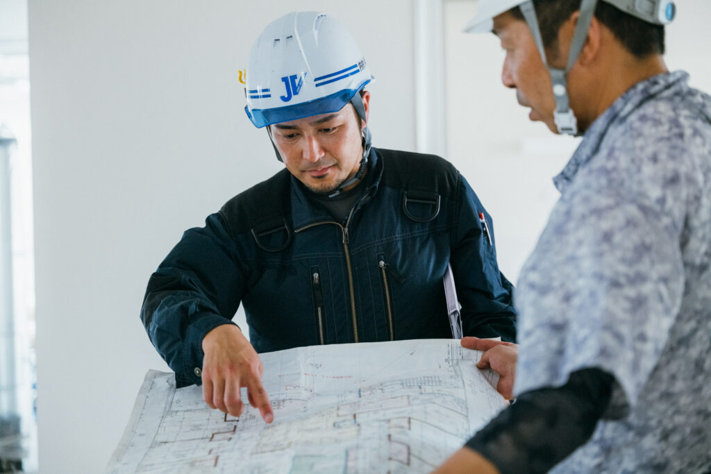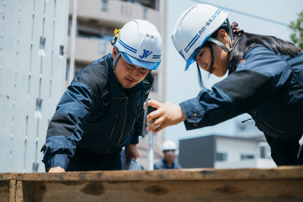建築は一人ではできない仕事です。大型建築になると、たくさんの職人さんや業者さんに何年間も協力をいただきながら、ひとつのものを作り上げていきます。だからこそ、日ごろからコミュニケーションを取ったり、お互いに信頼できる関係づくりは大切にしています。また、お施主様のご要望をお聞きしたり、近隣の方々へのご挨拶なども大切な仕事なので、話はある程度できた方がいいかもしれません。かといって、おしゃべりな人じゃないと務まらないかというとそんなことはなくて、僕はたまたま元気に話す方ですが、素直に心を込めて話せれば大丈夫だと思います。建築業は経験を積みながら多様なスキルを身に付けていく必要があるので、そういった意味でも、素直に学ぶ姿勢がある人が向いていると思います。