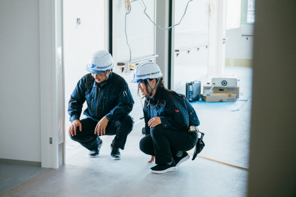 ここ数年で大きく変化しました。もともと内村建設は真面目で誠実な仕事、品質を重視する仕事が特長でその核の部分は変わりませんが、働きやすさが変わりました。数年前に会社像や働き方を考える社内プロジェクト「未来共創プロジェクト」が立ち上がって、最初は「現場が忙しいのに、対話?コミュニケーション?」と思った時期も正直ありましたが、少しずつ理解できてきて、今は結果的にワークライフバランスがすごく良くなり、社内コミュニケーションも活発になり、若手登用も進み、街づくりプロジェクトも動いて…と良い変化を実感しています。自分の会社が建築業界にとどまらず、広く社会に関わっていく姿を見ると、ここで働けて誇らしいという気持ちです。