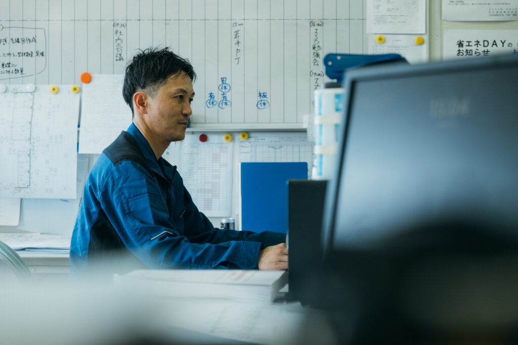 社員全員が、自分の仕事に対して面白みとか誇りを持てる環境をみんなといっしょにつくっていきたいという気持ちがあります。自分は入社当時、内村建設の先輩方の「ここまでやるのか」という真面目な思いや、仕事ぶりに圧倒されたことがとても印象的でした。その先輩方の建築の品質へのこだわりや建築業に関するプライド、そして、心を込めて建築をつくるという教えは、内村建設の大切な財産だと思うので、それをこの時代に合った形で、若い世代の社員たちにも伝えていきたいと思っています。また、内村建設がある上本町は歴史ある街で、地元にボランティアやプロジェクトなどで何か貢献していきたいという気持ちがあります。
